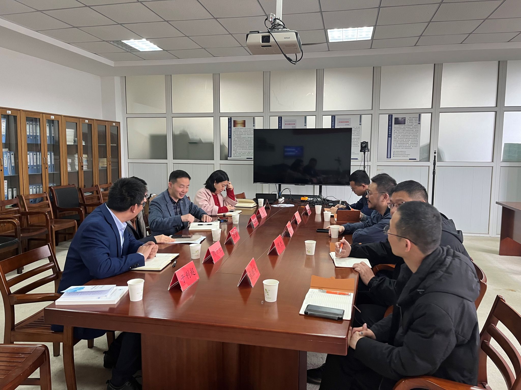 3月28日,浙江新维狮合纤股份有限公司董事长郑晓冰一行莅临学院访问交流,我院沈加加副院长(主持工作)、非织造材料与工程系主任韩万里、副主任生俊露及非织系骨干教师参加座谈交流。