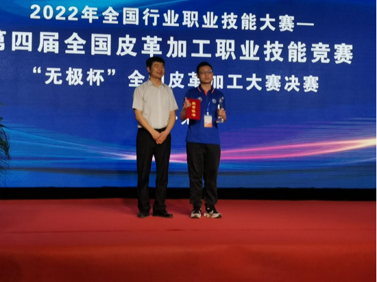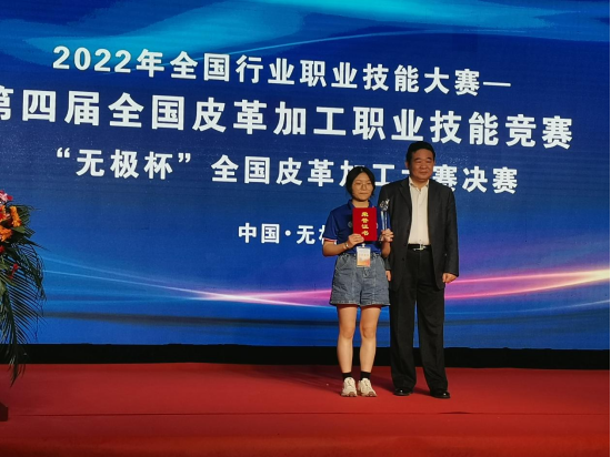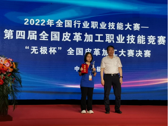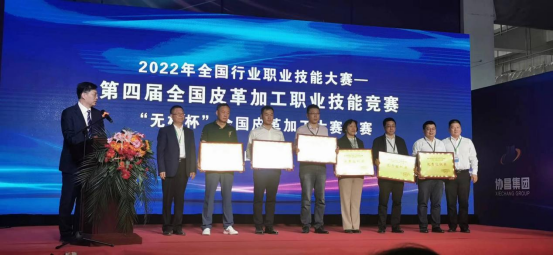 被授予优秀组织奖。中国轻工业联合会副会长、中国皮革协会理事长李玉中、无极县县委书记封立新、中国财贸轻纺烟草工会轻工烟草工作部部长杨栋国、中国皮革协会副理事长陈占光等领导为获奖选手颁奖。