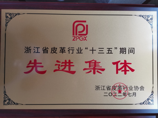 被浙江省皮革行业协会授予“浙江省皮革行业‘十三五’期间先进集体”
