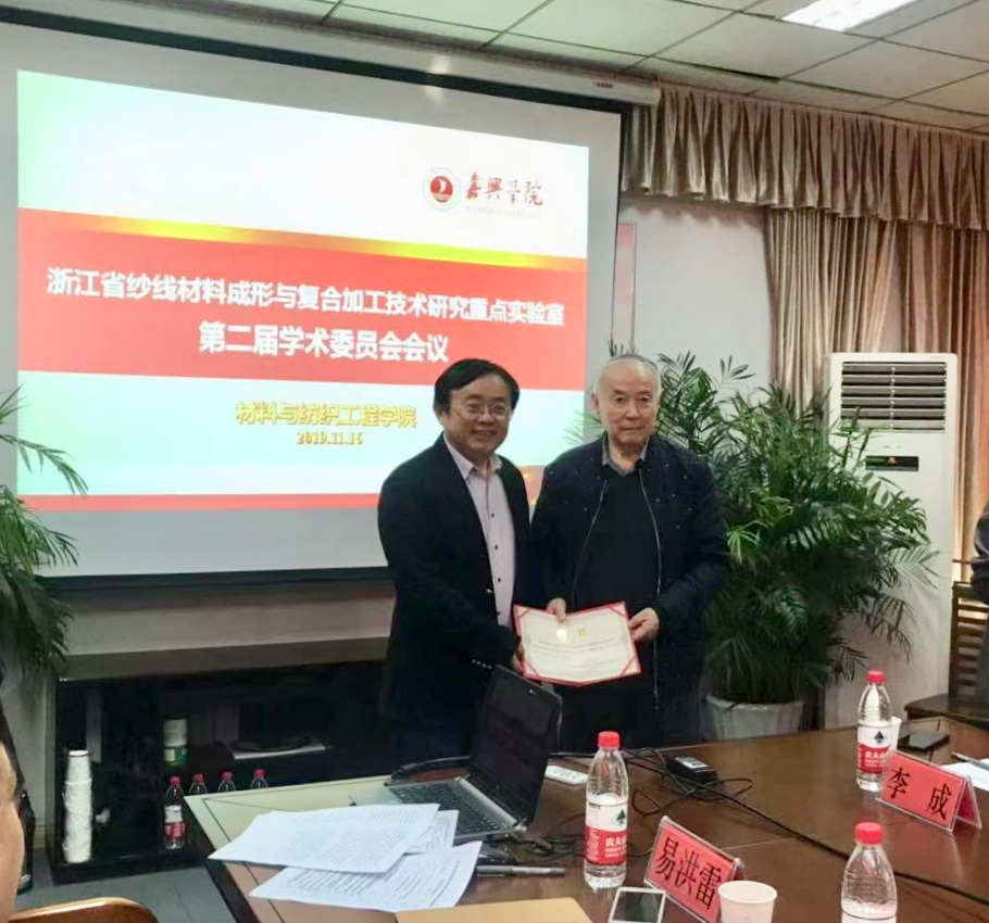 院长易洪雷,副院长黄立新,副院长李海东,副院长代正伟以及2019年省重点实验室开放基金项目汇报人参加本次会议,会议由材纺学院院长易洪雷、学术委员会主任蒋士成院士分别主持。