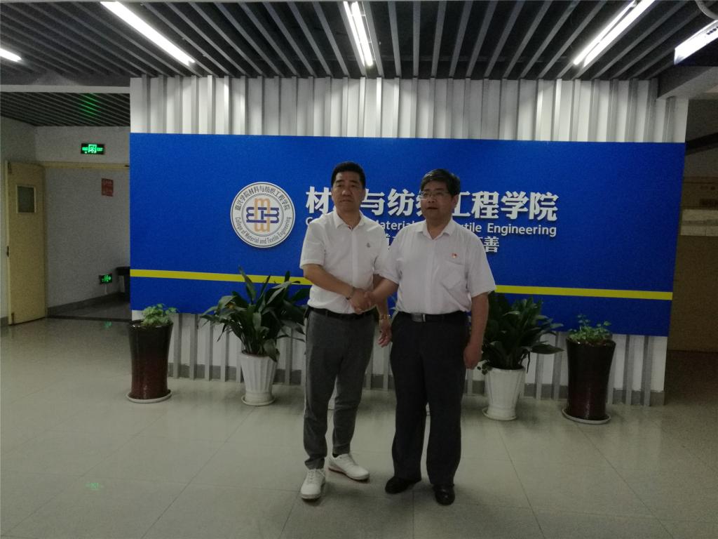 6月26日,浙江雅娜纺织有限公司朱金华董事长、张新宇副总经理、冯一波主任等一行4人到材纺学院交流,材纺学院党委书记、院长易洪雷,副院长李海东、副书记黄芳芳、纺织系主任曹建达、浙江兰宝毛纺集团有限公司金凤珊高工参加座谈。
