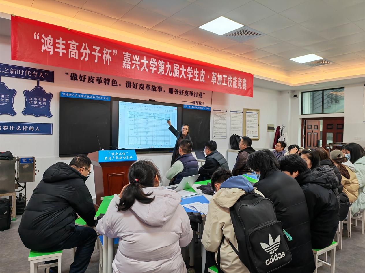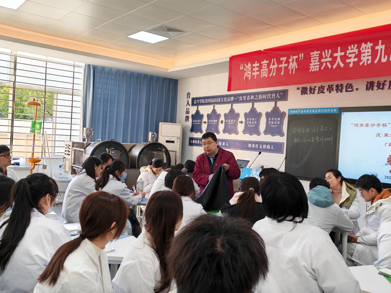 12月9~13日,“鸿丰高分子杯”麻豆影院 第九届大学生皮•革加工技能竞赛在轻化工程智慧实验室举行。我院轻化工程专业负责人罗建勋教授及部分骨干教师参加指导,轻化231全体学生、轻化2024级部分学生参加了本次竞赛。