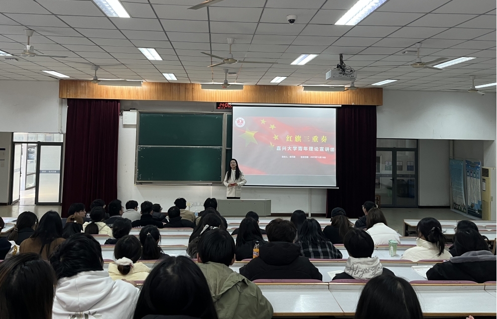 宣讲会上,俞巧琦老师以《红旗三重奏》为题,用三面“国旗”串联初心、传承与实践,引导学生党员从红色旗帜中汲取信仰力量。闫诗佳老师围绕《以美为桥 用设计讲好“嘉”乡故事》,结合专业特色,以设计为载体传递家乡文化、践行全会精神,为学生党员搭建起理论学习与专业实践的桥梁。李金融同学则以《从“无菌区”到“绿色界”:我们手里的“守护”,从来都一样》为题,结合自身感悟,讲述了青年一代在不同领域践行责任担当、守护美好家园的青春故事,展现了新时代青年党员的使命与作为。