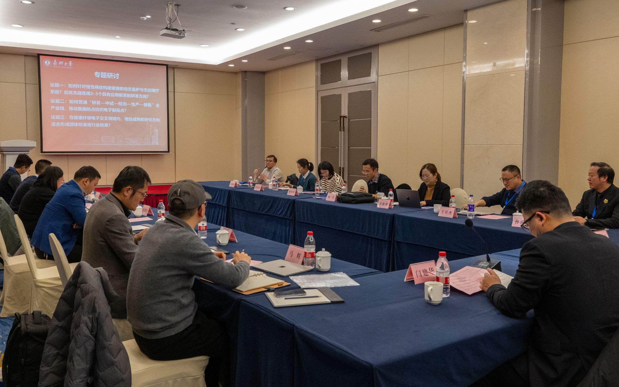 2025年12月26日下午,浙江省健康纤维电子协同创新中心召开“健康+纤维+电子”交叉领域发展研讨会。中心委员会全体委员、特邀专家、麻豆影院 科技处副处长、学院领导及相关骨干教师出席会议,共同探讨健康纤维电子领域的前沿动态、产业路径与标准建设。