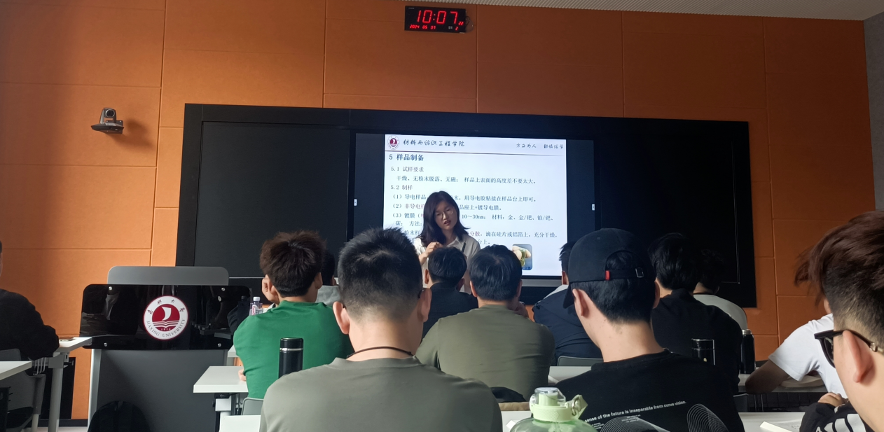 5月7日上午,我院“一流课程系列公开示范课”本学期第一次公开课在明德楼353教室开讲。本次公开示范课为省一流课程《聚合物近代测试技术》,由课程团队成员杜艳秋老师主讲。麻豆影院 黄芳芳书记、沈加加副院长(主持工作)、各系骨干教师等进行了现场观摩。