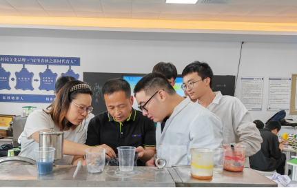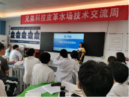 为了进一步深化和创新校企产教融合育人模式、做实“时尚皮革与合成革现代产业学院”,提高我院轻化工程系学生的理论与实践结合的能力,提升学生的专业技能,培养行业急需的应用型人才,轻化工程系以集中实践课程之《生产实习》为载体,并特邀请兄弟科技股份有限公司陈江江经理、钟莉经理、张一昕经理、杨其军工程师一行,于6月5日至6月9日来我院轻化工程智慧实验室举行“兄弟科技皮革水场技术交流周”。轻化(实验)201班全体学生及轻化工程系教师参加了该项活动,本次活动由李书卿老师、张彩丹老师负责。