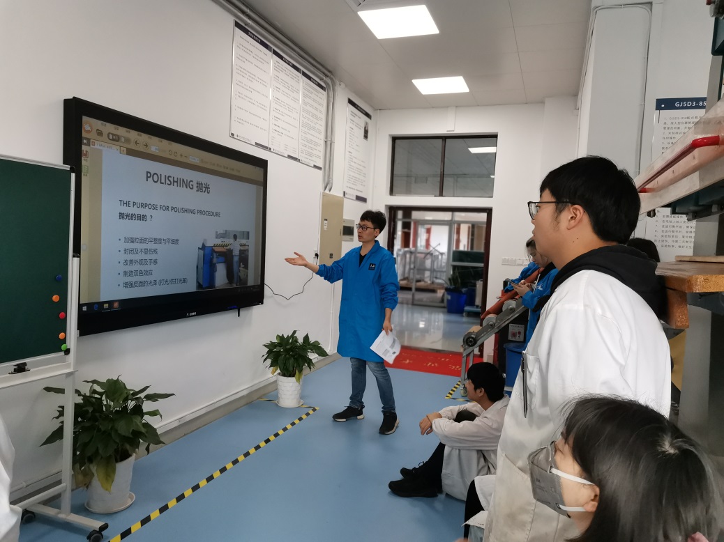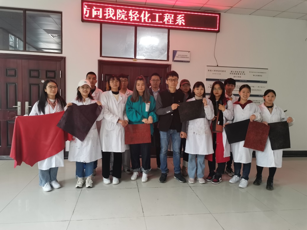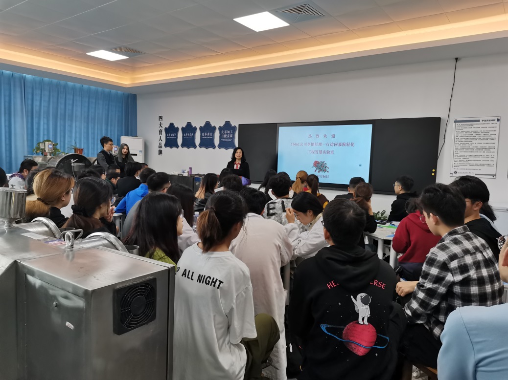 承办的全国皮革科学技术会议的情况及近年来轻化工程专业的发展情况。其次,李艳经理给师生们简要介绍了公司的情况及对同学们的希望。随后,唐佩龙工程师就皮革涂饰方面的知识给同学进行了讲解。
