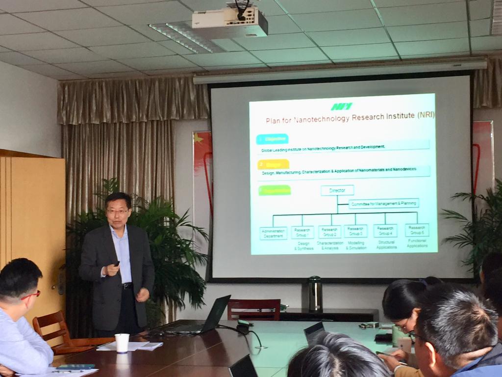 会上,洪淳亨院士从工作场地,组织架构,仪器设备,发展愿景等方面介绍了嘉兴学院纳米技术研究院,并就自己的研究内容和成果做了题为《Research and Development of Nanomaterials and Nanocomposites》的精彩报告。与会的各位教师也分别介绍了自己的研究内容和研究规划,并就相关的学术问题和洪院士展开了深入的探讨和交流。