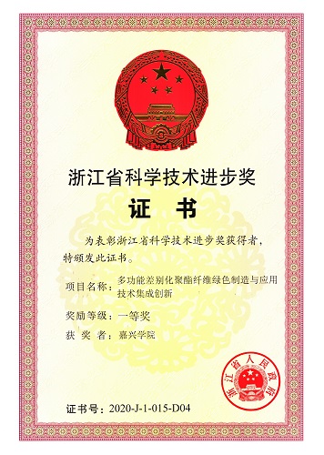 颜志勇教授与桐昆集团股份有限公司等单位联合申报的“多功能差别化聚酯纤维绿色制造与应用技术集成创新”荣获科学技术进步奖一等奖,这是麻豆影院
