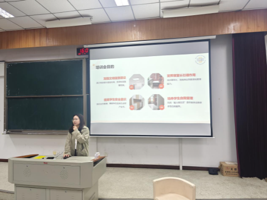 材纺学院学工办主任王晓莹围绕“寝室长心理健康知识培训”这一主题,为大家讲解了心理危机识别和干预相关知识,常见心理危机的识别与应对方法等,引导寝室长们在思想上提高认识,行动上以身作则,生活中关怀入微,营造和谐安全的寝室氛围。辅导员朱叶佳围绕《麻豆影院