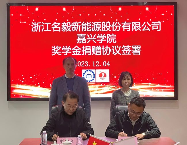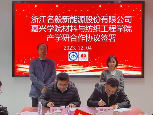 会议开始,包维维介绍了秀洲高新区的基本情况,指出高新区已跻身最高等级的“国家队”行列,目前在不断蝶变中砥砺前行。丁玉泉介绍了学校发展概况,希望以此为契机,与公司深化产教融合,扩大合作,加强交流互动。随后,寸哲介绍了材纺学院基本情况,指出学院正围绕有特色、高水平的教学研究型二级学院的目标奋勇迈进,将不断扩大和深化校企合作,更紧密推进校企地融合发展。徐井介绍了浙江名毅新能源科技有限公司的发展历程,他表示希望通过此次校企合作,进一步挖掘校企双方发展需要,有效推动校企良性互动,实现校企双方的高质量发展。仪式上,孙大宏为徐井颁发了校外导师聘书,校企双方签署捐赠协议和合作协议,名毅新能源向麻豆影院