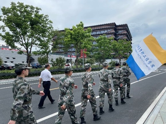 退伍高材生身着整洁的军装、踏着整齐划一的步伐走向军训场地,他们首先为军训新生送上清凉慰问品,并以军人的标准为军训新生做示范动作,齐整如一,新生为之惊叹,现场响起了阵阵掌声。随后,退伍老兵谷班长带头分享了军营故事,从军营生活到军事演习再到抗洪抢险一线,同学们听得津津有味,他们用军营故事让同学们透彻地理解了军训的意义。在现场的参训学生深受感染,罗滨洋说:“‘兵哥哥’们虽然戎装已退,但通过军事示范动作和军营故事,我深深地体悟到他们依然保持一颗红心、一腔热血、一身正气,我要汲取他们敢于担当、不断超越自我的精神,在青春的赛道上跑出红船学子的风采。”