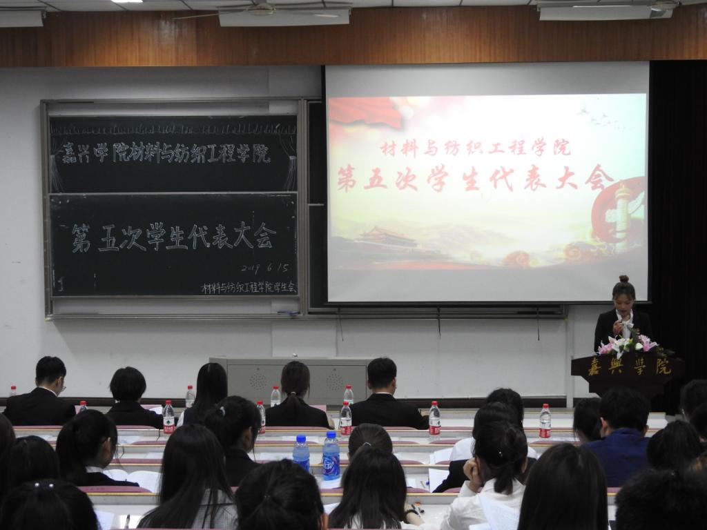 2019年6月15日18:30,材纺学院第五次学生代表大会在梁林校区7号楼报告厅胜利召开。出席本次代表大会的有院团委书记李寒星老师,院团委副书记刘洋老师,校学生会副主席何珠莲同学,各兄弟学院学生会主席,学生会委员候选人及学生代表。