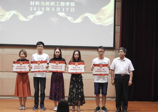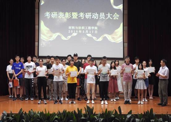 在梁林TCL报告厅召开了2018年考研表彰暨动员大会,材纺学院院长易洪雷、院党委书记陈立力、院党委副书记黄芳芳、副院长李海东、纺织系主任曹建达、高材系主任代正伟、轻化系主任罗建勋、非织造专业负责人钱程、学工办老师以及考研学生等400余人参加了会议,会议由学工办主任李寒星主持。