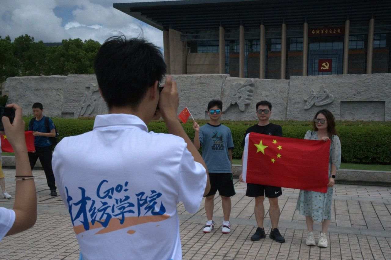 为筑牢宣讲根基,“纤语织旗韵”团队首先踏上研学路,细究国旗背后从历史到工艺等方面的故事。