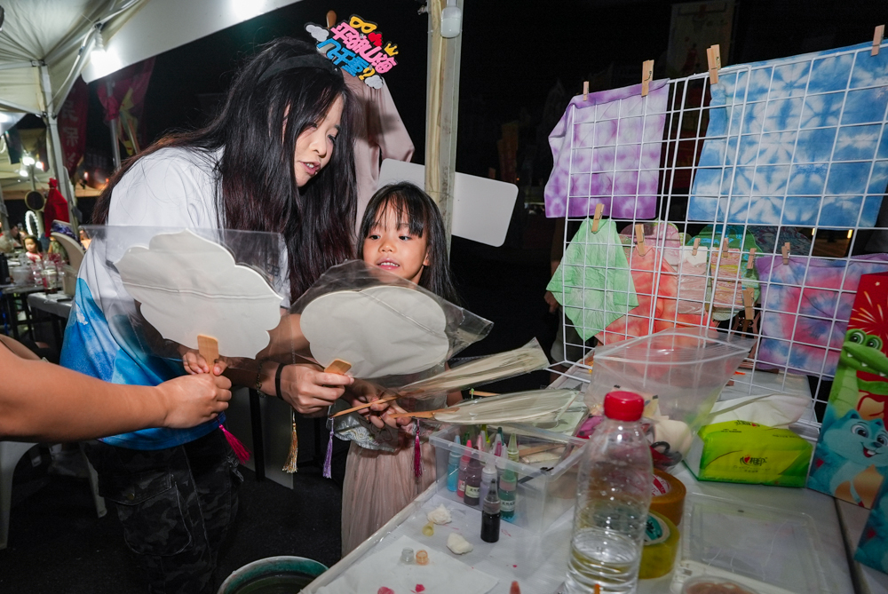 最聚人气的,莫过于互动体验区。学生们依托专业特色,设置扎染与漆扇制作活动。市民在志愿者指导下亲手创作,于色彩交融间感受传统工艺的魅力。现场悬挂的扎染作品与产品故事展板,无声讲述着学院的教学成果与文化内涵。