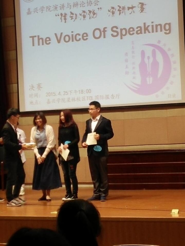 当中对他影响最深的,当属浙江省汉语口语竞赛了,这是他入校以来遇到的最正式最权威的一次语言类竞赛,他欣喜若狂,积极准备,为了能够参加最后的省赛,他凭借以往在演讲方面积累的经验和不懈努力,与浙江省各高校参赛选手齐聚一堂,激烈角逐。此次比赛历时8个月,其中艰辛,如今回想起来,怕是最宝贵的财富之一。他曾不止一次想要放弃,但是最终他靠着顽强的毅力挺了下来,那是他儿时就有过的梦想,是他不能放弃的坚持。