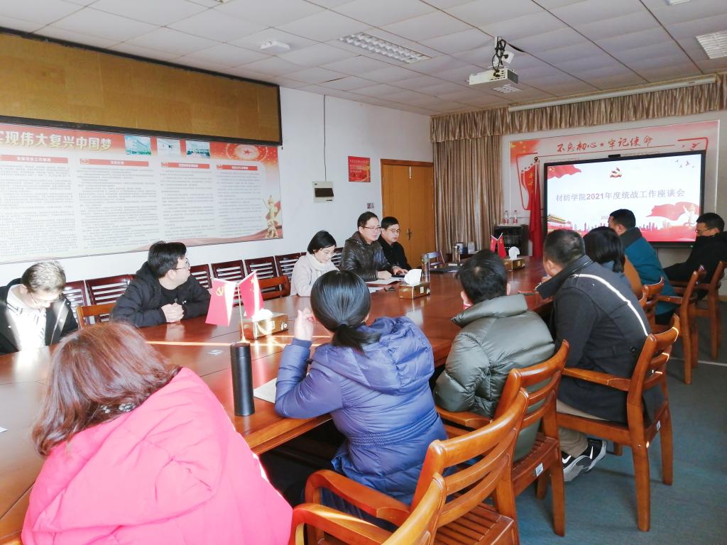 12月31日,材纺学院在419会议室召开2021年统战工作座谈会,学院党委书记韩宝明、副院长李海东、副书记凡欣、各民主党派和无党派教师参加了座谈。会议由凡欣主持。