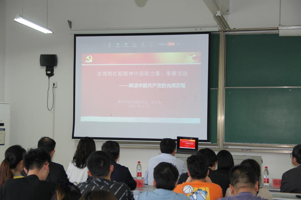 吴云达副书记通过大量精彩的图片、珍贵的史料和鲜为人知的故事,全面讲述了红船精神贯穿百年党史全过程,充分认识学习百年党史、弘扬红船精神的现实意义以及在领悟红船精神中汲取力量、掌握方法。鼓励大家用好历史的“长镜头”,善于运用历史眼光和发展眼光,把正在做的事放到历史长河中去观察、来谋划,总结经验规律,把握发展脉络,坚定前进方向;用好世界的“广镜头”,立起全球视野,跟踪把握世情国情党情最新变化;用好求是的“微镜头”,透过纷繁复杂的表面现象和苗头性倾向性问题,把握事物本质和变化走向,知道风险在哪里,并能够及时采取化危为机的有效应对之策。