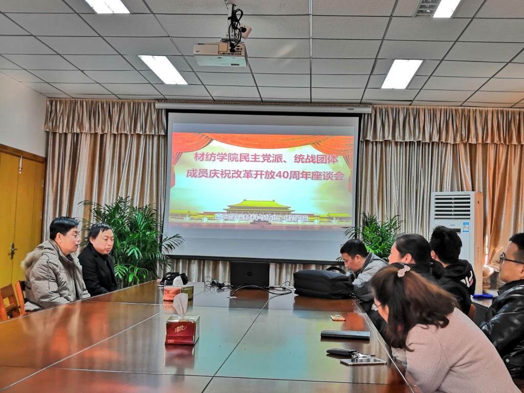 为庆祝改革开放四十周年,12月18日下午,材纺学院召开民主党派、统战团体成员座谈会。材纺学院副院长李海东主持会议,学院党委委员、高材系主任代正伟以及民主党派、无党派、党外知识分子、归国留学人员等参加会议。