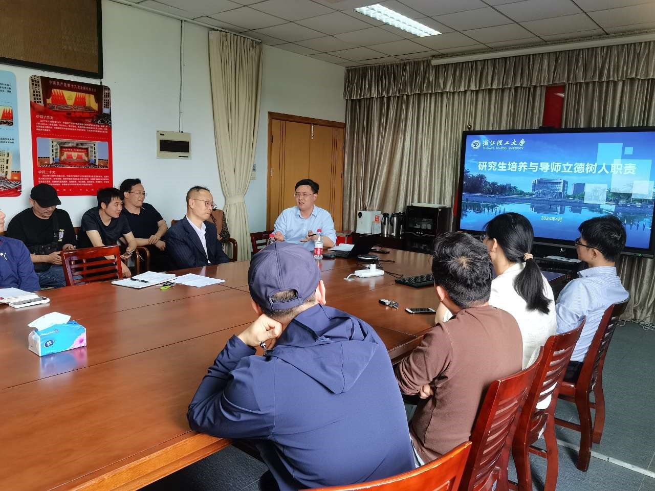 为了提高研究生导师素质,提升研究生培养质量,5月9日下午,我院特邀浙江理工大学崔灿教授为我院研究生导师做培训和指导,兰平教授主持培训会,学院已有研究生导师和今年计划申请硕导的所有老师参加了培训。崔教授在浙江理工大学从事研究生招生、培养等各项研究生管理工作多年,拥有丰富的管理经验。培训会上,崔教授首先解读国家对研究生教育发展的有关精神和相关文件,接着通过多个真实案例来向在座导师悉心传授经验,从多方面指导各位导师做好立德树人工作,在对研究生进行学业指导的同时注重人文关怀,同时解答了导师的相关疑问,现场气氛热烈。