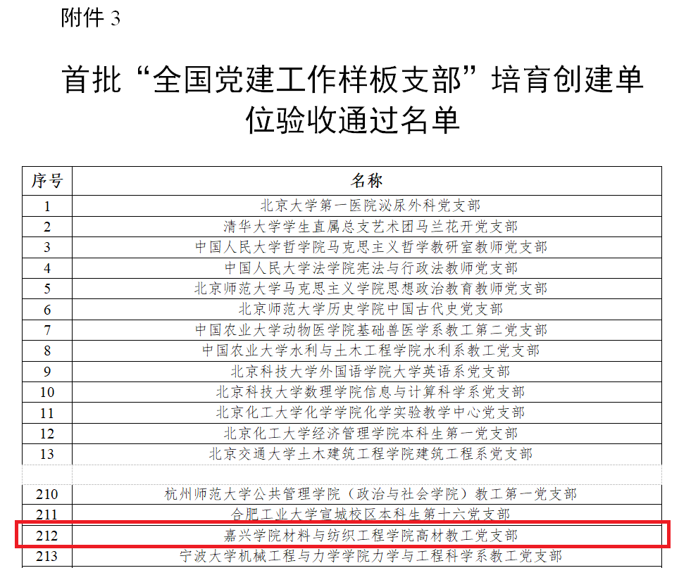 高材教工党支部名列首批“全国党建工作样板支部”验收通过名单之中。