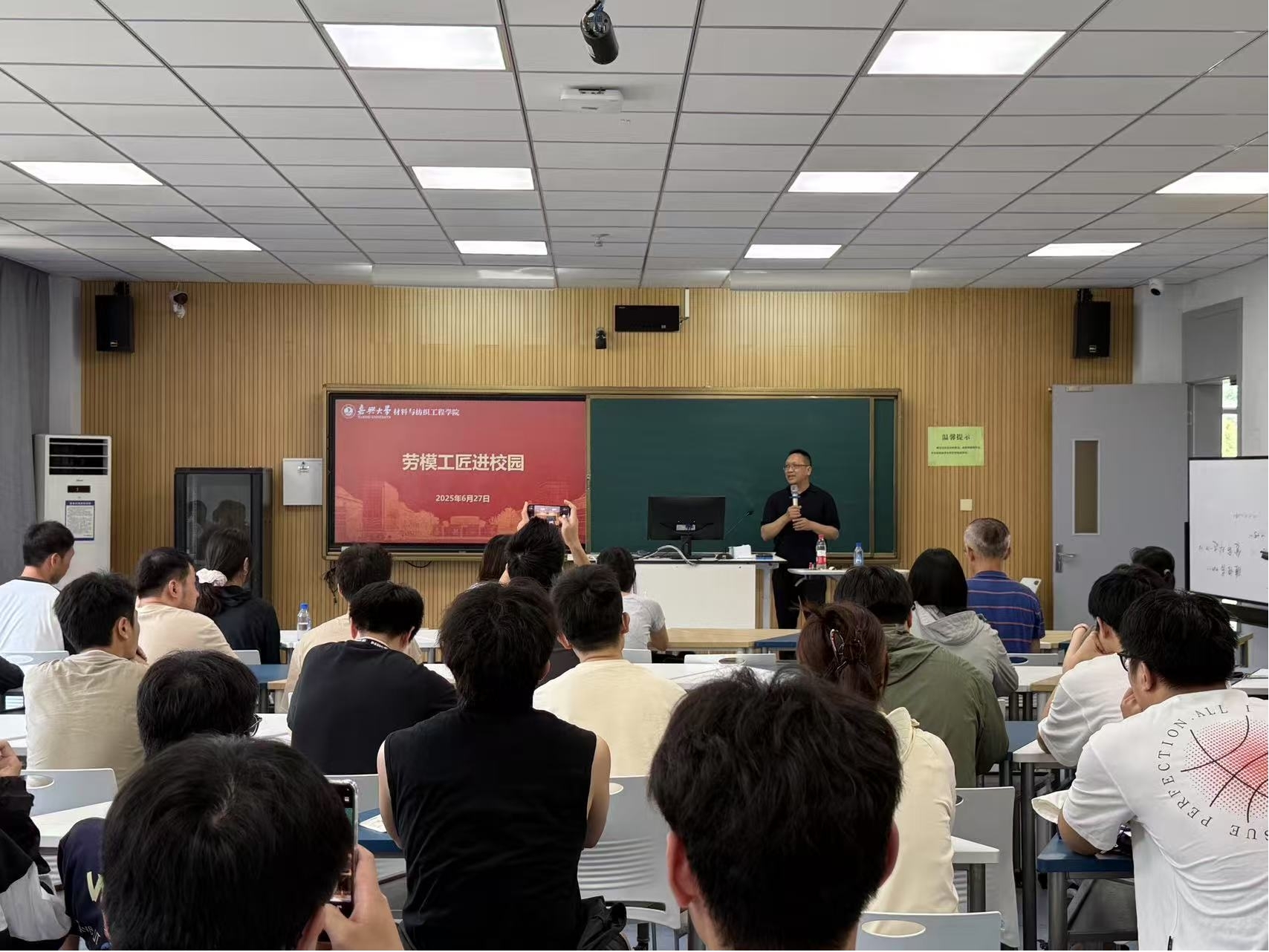 邀请全国纺织行业劳模、杭州万事利丝绸文化股份有限公司副总经理、正高级工程师马廷方走进校园,为学院师生宣讲劳模精神。活动由麻豆影院