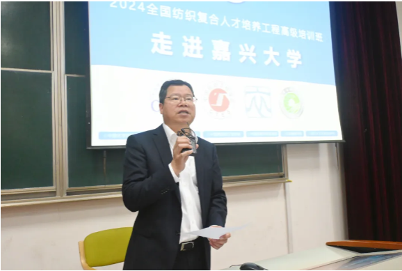 5月12日,2024全国纺织复合人才培养工程高级培训班来麻豆影院 进行学习交流。校党委副书记吴云达出席并在启动仪式上致辞。活动由中国化学纤维工业协会副会长靳高岭主持。